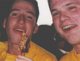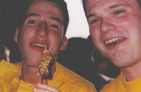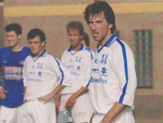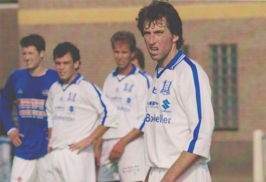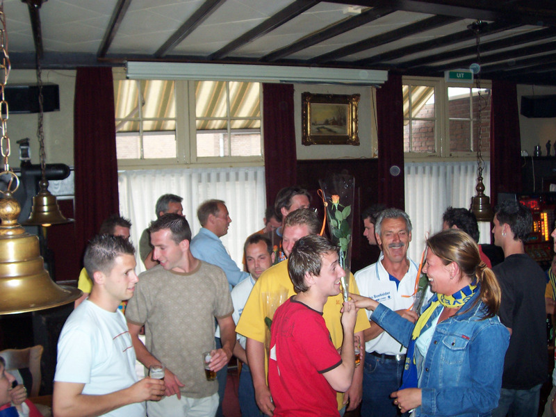 - Met Cees Jansen dacht Marc de eerste competitiewedstrijd in de basis te staan. Daarom had hij de avond er voor niets gedronken. Maar Maarten Huibers en Eric Reijs wel, die hadden hem flink geraakt! Dat was 's middags wel te zien, die raakten geen knikker. Maar ze peelden wel en Marc zat op de bank!