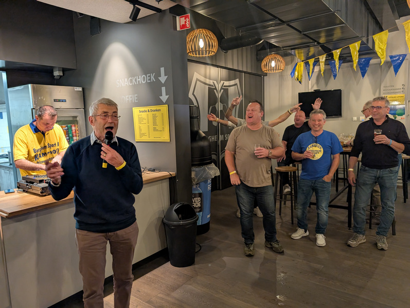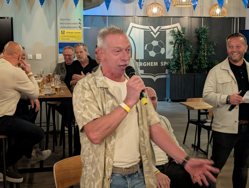 In een volle kantine organiseerde Club van 100 Berghem Sport op vrijdag 3 oktober een grootse reünie voor de selectie van Berghem Sport aller tijden! Zij toonden oude foto's en filmpjes vanaf 1939 tot 2025! De historie van de selectie kwam voorbij. Op de tafels lagen ook oude team-foto's.
