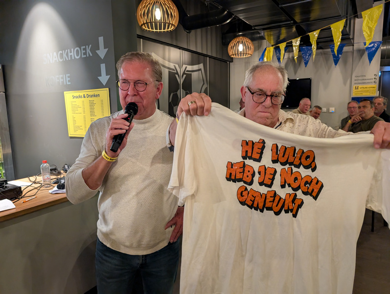 vanuit het publiek naar voren te brengen zoals waar komt de shirt vandaan met de tekst 'He lullo, heb je noch geneukt'.